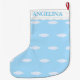 Beautiful clouds on light blue background personalised stocking. There are angels among people! Merry Christmas!
