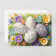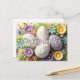 This unique postcard features an abstract Springtime collage with several flowers and decorative Easter eggs. This cute postcard would make a wonderful greeting for friends, family and co-workers.