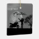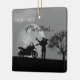 This unique motorcycle couples Christmas ornament design features a charming blue background with a moon and tree and a romantic couple next to a motorcycle. Text on the front reads "Our First Christmas". Personalise the back with a name and year.