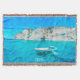 Beautiful Crete Greece Ocean Watercolor Painting Throw Blanket