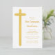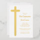 Elegant first communion invitations feature a real gold foil cross and your details in chic lettering. Perfect for your child's first communion, baptism or christening. MATCHING items available in our collection.