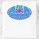 Beautiful cyan blue kaleidoscope vector art design oval sticker