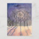 Silhouetted winter trees cast long shadows across a snowy landscape. Original watercolor.