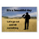 Falconers live to hunt with their birds. A silhouette of a falconer with his bird. The words It's a beautiful day Let's go out and kill something surrounds them.