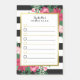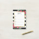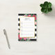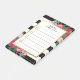 Striped to-do post-it notepad with red poinsettias, pink roses, mistletoe, and faux gold details.