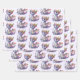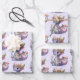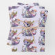 Wrapping paper sheets with an illustration of a mythical dragon. Purple and blue scales. A flowered gold crown with horns adorns its head. Magical, fun and friendly.