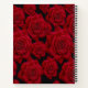 Stunning photo art consisting of deep vivid red rose blooms arranged together to form an elegant pattern against a classic black background, behind a red and black oval text plaque where your initials can be added in traditional black text.