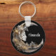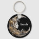 A keychain with a beautiful illustration. A feminine face in the moon surrounded by flowers.