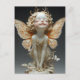 A darling porcelain, baby fairy with curly blonde hair and antenna, pretty white and orange wings and white butterflies.