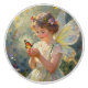A pretty little fairy holding a butterfly with flowers in her hair and a floral background. This is an impasto style illustration. Pretty fairy tale style knobs for cabinets or craft projects.