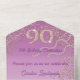 The card features a handsome falling Rose Gold Glitter pattern on a rose gold gradient background. The classy White Pearls and a unique Gold and Rose Gold Glitter 90th Number bring a touch of elegance to your Birthday Party.