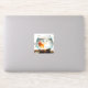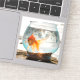This sticker showcases Oliver, a fantail goldfish, as he swims with a surprised grin in fish bowl near Pacific Ocean, San Diego, California