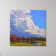Huge clouds dominate this beautiful Illinois farm scene with Autumn colour on the background trees and the scenic pond reflecting the trees and sky. Design exclusive from an original impressionistic oil painting by Daniel Fishback.