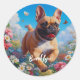 Beautiful Fawn French Bulldog & Flowers Classic Round Sticker