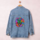Beautiful Felt Look Sugar Skull with Flowers Denim Jacket