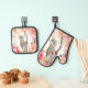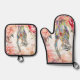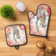Beautiful Floral Cat Quilted Oven Mitt & Pot Holder Set