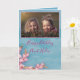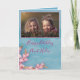 Your aunt will love her personalised photo birthday card from you and yours. Featuring a beautiful blue cloud background with pink flowers, your photo goes in the easy to use template at the top. The border around the photo is a light pink hue and can be adjusted to fit the size of your photo. You can also adjust the colour of the frame any way you wish. The sample text on the from reads “Happy Birthday Aunt Helen” in cute pink cursive font.