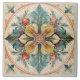 Beautiful Floral Tile Pat#15 Teal Yellow ID1078