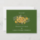 This beautiful floral RSVP card measures 4.25" x 5.5" and is easily personalised with your names (one side) and your desired RSVP response date on the other. Features lovely yellow flowers, gold wedding bands and a green background.
