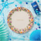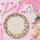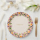 Beautiful flower crown wreath in white & violet on sand beige Paper plate. Text can be personalised. Ideal for wedding, birthday, anniversary and other events.