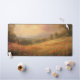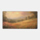 Colourful red flowers are scattered in the country meadow scene with a rolling landscape and soft green trees and skies in the background in an old painted style. This design creates a beautiful and relaxing background on your desktop!