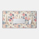 Desk mat with a lovely French themed pattern. Pretty flowers and an Eiffel tower and butterflies. Colours include pink, blue, peach and cream.