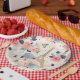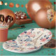 Paper plates with a lovely French themed pattern. Pretty flowers and an Eiffel tower and butterflies. Colours include pink, blue, peach and cream.