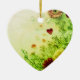 Flowers are on the front and more flowers are on the back of a heart-shaped ceramic Valentine tree ornament.
