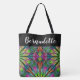 I bought this tote bag because of the beautfiful design purple flowers. My dear friend had loss her best friend to cancer. I was very excited to see how well the designed is so beautiful and my friend loves her gift. The print came out perfect.