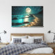 Beautiful Full Moon Beach Ocean Starry Night Canvas Print