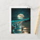 Beautiful Full Moon Beach Ocean Starry Night Postcard