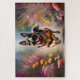 A beautiful German shepherd runs through colourful flowers on this design which is perfect for breeders, kennels, or dog lovers.