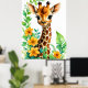 Beautiful Giraffe Animal With Orange Flowers Poster