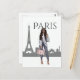 Beautiful Girl in Paris with Eiffel Tower Postcard