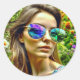 Beautiful Girl with Sunglasses Reflection Flowers Classic Round Sticker