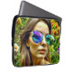 Beautiful Girl with Sunglasses Reflection Flowers Laptop Sleeve