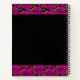 This modern & trendy, beautiful & colourful girly custom Notebook & Journal features hot pink and magenta roses with green leaves seamless pattern on black with personalised stylish typography name monogram & date. Perfect for home business, personal or any occasional: birthday, mothers day, graduation or anniversary & wedding unique & beautiful gift ideas for her who loves pink roses. You can easily change the text and colours or remove by customisation tools.