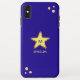Elegant beautiful glittering golden star on blue background iPhone XS Max Case. Text can be personalised.