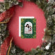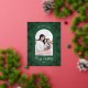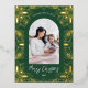 This beautiful Christmas greeting features an elegant gold botanical real foil framed photo arch on a green front, and return address and editable holiday message on the back.