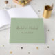This beautiful green theme wedding guestbook is truly lovely. Featuring a green background with a brown font. The couple's name is presented in modern brown cursive font with the wedding date underneath in brown. Customise your wedding guest book today!