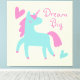 Pastel green unicorn design on a light green background, with a quote "Dream Big". Wall art canvas print for little girls room decor. Great as a gift for newborn baby girl or for baby shower. Also, toddler girl would be thrilled to have this wall art. I just asked my daughters - they are 5 and 6 years old:)