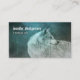 Business cards with a photograph of a gorgeous furry fluffy grey wolf. In the background is a dark forest with trees. Magical mystical vibe.
