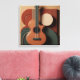 Soft pastel taupe background with a central acoustic guitar in blush pink, muted lavender, and subtle gold accents. Flowing 3D geometric shapes, Scandinavian boho minimal style, soft ambient shadows. Ready-to-hang canvas print for modern interiors.