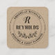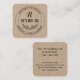 Square kraft paper business card with a vintage look for your business with your initial in a charming script, your name in a hand-lettered font above a hand-drawn wreath of leaves and berries. Add your full name or business name, and your service or tagline or title in curved text around the monogram. For wedding planners, makeup artists, interior designers, crafters, and more.