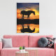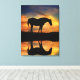 A beautiful canvas of a horse silhouette with a southwestern sunrise and reflected in a still pond of water.