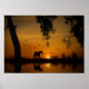 Beautiful Horse on a Golden Pond with Birds Poster