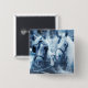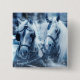 Button with a photograph of a pair of horses hitched together. A snowy day and a blue filter creates a magical scene.