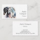 Business cards with a pair of black and white horses hanging out together. Illustrated with watercolors.