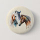 Button with a beautiful watercolor drawing. Featuring a pair of horses, brown and white. Head and neck visible with dripping paint along the base of their neck. Southwestern vibe.