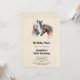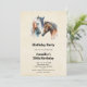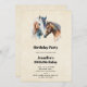 A birthday party invitation with a beautiful watercolor drawing. Featuring a pair of horses, brown and white. Head and neck visible with dripping paint along the base of their neck. Southwestern vibe.